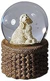 Basket-weave base in cast resin helps our 45 mm Cocker pup water globe fit into any decor.