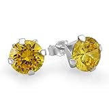 Savings Citrine Simulated Round Cut Diamond Yellow Cubic Zirconia CZ Sterling Silver 7 mm Stud Earrings