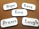Each magnet is made of glass amd measures approx 1 inches wide and 2 inches Long. Super strong rare earth magnets are securely attached and will hold strong to any metal surface. These are not a toy and are not intended for use by small children! Set of Five Glass Magnets to display on your fridge or office memo board Live Love Laugh Hope Dream Makes a gift idea Use on the fridge or in your home office