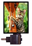 This is a very cute cat night light! This light makes a very unique gift and perfect as a stocking stuffer, office gift, or grab bag gift. This is a very popular light and will look great in any room in your house! This photographic image is printed in the USA using high quality inks. **PLEASE NOTE** Unlike cheaper night lights, the light bulb on these decorative lights are fully enclosed! No more seeing an exposed bulb when looking at the night light from the side. You'll love the richness of the light as it provides you with both safety and improved visual attractiveness. This is an extremely well built and solid unit! Unlike cheaper models, this bulb is FULLY ENCLOSED for safety and visual attractiveness. Plug can be rotated to accommodate outlets in any direction. Glass front for vivid visual display. Additional replacement bulb is included with each light (7 watt "night light" bulb). Unit is fully U/L approved.