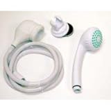 SHAMPOO SPRAY - Slip over tub spouts. Includes adjustable wall bracket, with molded bristle accessory. White Slips over tub spout Converts tub to a shower in seconds Includes adjustable wall mount Easy do-it-yourself installation instructions