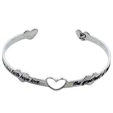 This Open Heart Women's Christian Cuff Bracelet is etched with: