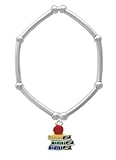 Hand enameled silver plated tube and bead charm bracelet