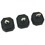 3 Black Velvet Clip Ring Display Stand Jewelry Showcase. This is a new set of 3 black faux leather ring displays. Great for displaying jewelry on countertops and showcases. Holds 1 ring. Each measures approximately 2 1/8" x 2 1/8" x 1 1/4" (54 x 54 x 32 mm).