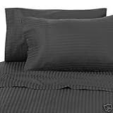 OrderNow Egyptian Bedding 1500 Thread-Count, Queen Pillow Cases,Black Stripe, Set of 2